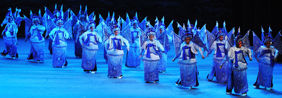 Dancers, generals of Wu's and Cao's troops, women folks, imperial concubines, soldiers, and common people are played by performers of Peking Opera Theatre