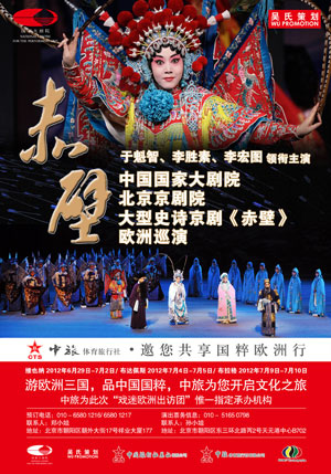 大型新编史诗京剧《赤壁》是中国国家大剧院于2008年开幕一周年之际倾力推出的一部原创力作,同时也是大剧院目前为止制作的唯一一部京剧剧目。该剧故事取材自中国古典文学名著《三国演义》,是中国戏曲艺术与古典文学的一次完美结合。全剧以一千多年前的传奇战役"赤壁之战"为原型,讲述了中国东汉时期魏、蜀、吴三国鼎立,蜀、吴两大阵营结成联盟、巧施妙计,通过"草船借箭"、"火烧赤壁"等军事谋略,以弱胜强的历史故事。
